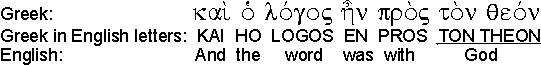 يقول ". والآن هل لك أن تخبرني ما هي الكلمة اليونانية التي تعني الله في الجزء الثاني من الاقتباس " .. وَالْكَلِمَةُ كَانَ عِنْدَ اللَّهِ وَكَانَ الْكَلِمَةُ اللَّهَ." (يوحنا 1:1)؟ لكن القس ظل صامتاً...فقلت له أن الكلمة هي TON THEOS والتي تعني " إله ".